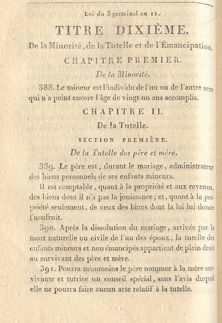 De la Minorité, de la Tutelle et de l'Émancipation