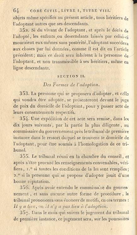 De l'Adoption et de la Tutelle Officieuse